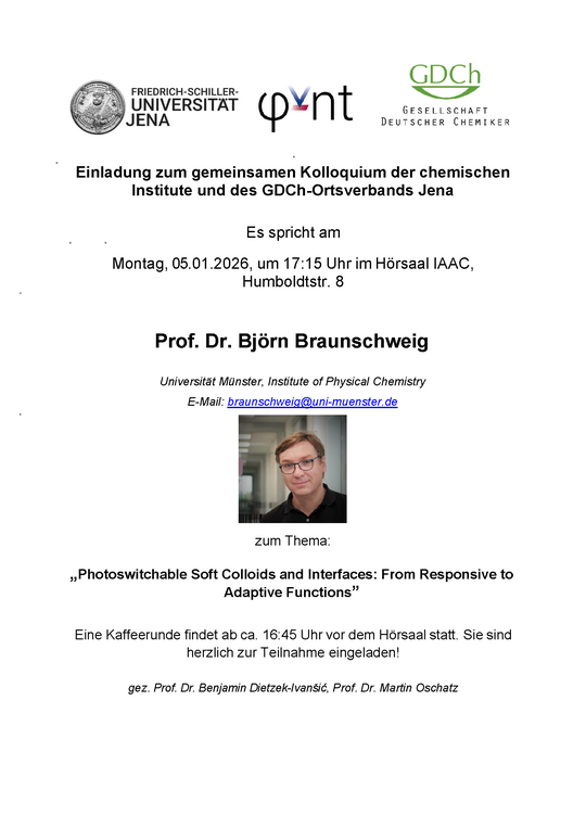 Prof. Dr. Jens Bredenbeck (University Frankfurt) will visit RTG PhInt on 19 January 2026.